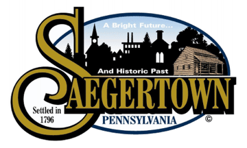The seal is made of a horizontally stretched blue ring. The ring surrounds a scene which shows a gradient sky behind a black silhouette of a town. In the sky and in the silhouette is the Borough motto "A Bright Future... And Historic Past". Next to the motto is a log cabin. Overlaying the emblem is the town name in a golden, fancy font. In the bottom part of the "S" is the settling year. Under the name is the state name.