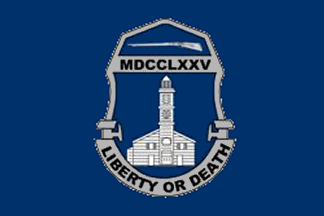 The flag of the Training Command featured the battalion's dark blue and grey or silver logo centered on a dark blue field. The logo shows a rifle at the top pointing toward the hoist, and a representation of a building that may be the original Virginia capital building in Richmond. Arched below the building are the words "LIBERTY OR DEATH" with the date "MDCCLXXV" between