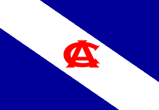 Blue with a white band from upper hoist to lower fly, and on the center a monogram of the letters "A" and "C."