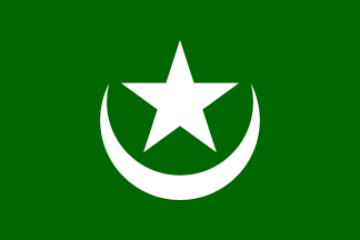 The orientation of device may also resemble the one from the flag of Pakistan, although the star is larger here as well and is not necessarily pointing towards the corner. Rows of flags with this design, combined with those of national flags, were photographed at the mosque in Phum Soai village near Chau Doc1.