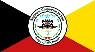 [Thanks to Chief Phil Peters and the Saginaw Chippewa Tribal Council for donating a flag so that the design could be reproduced with complete accuracy and to the staff at the tribal headquarters for supplying information concerning the symbolism and history of the emblems of the Saginaw Chippewa.]