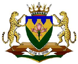 ARMS: Per chevron inverted, Or and Vert, the head of an Orange River Lily (Crinum bulbispermum) with three blossoms and four buds slipped proper and a chief dancetty, the peaks terminating in merlons, Azure; the shield ensigned of a circlet Or, embellished with representations of cut diamonds Argent, enamelled Azure against the upper and Vert against the lower facets, heightened of four heads of maize Argent, leaved Or, alternating with as many ears of wheat of the last.