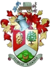 Crest: On a wreath of the colours a Trek Wagon between a slip of Jacaranda and a slip of Flamboyant (Pionciana Regia) both flowered all proper.