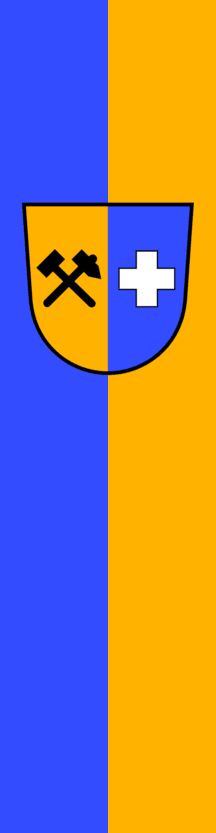Description of arms (German): Im gespaltenen Schild vorn in Gold ein schwarzes Bergbauzeichen (Schlegel und Eisen), hinten in Blau ein silbernes Kreuz. [1] [2]