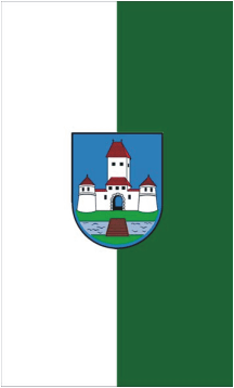 As flag the arms is shown on the Styrian colours, i.e. white-green.