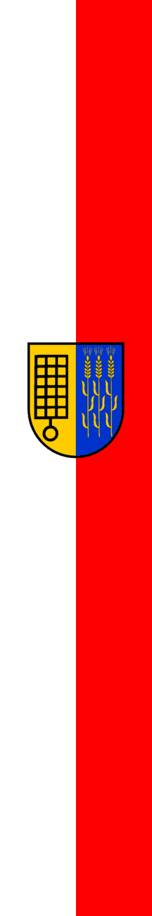 | Description of flag: | two stripes, white-red, with coat-of-arms [2], although the municipal colours officially granted are yellow-blue [1] |