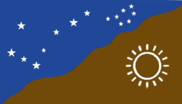 stars (15 stars formed a constellation.) Lower part is brown with a white sun