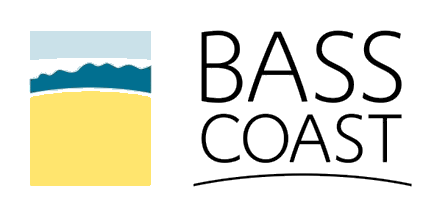 A white flag with rectangular stylized coastal scene near the hoist and the
