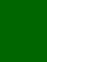 The flag of Lobbes is vertically divided dark green-white. It is hoisted over the town hall and near the bridge over the Sambre, at the entrance of the town when coming from Thuin.