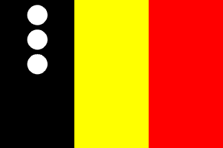 #534. The flag is vertically divided black-yellow-red, with three white disks placed vertically in black stripe. The flag proportion is 2:3.