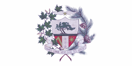The shield is surrounded dexter by a branch of maple, a significant component of the local landscape that deserves protection, and by a branch of pine, with needles and fruit, representing the other significant component of the local forest.