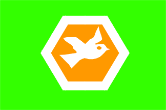 image by Jarig Bakker, 13 December 2005Vancouver - green flag, orange hexagon bordered white, charged with a white bird.