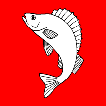 Gules, a Perch Argent hauriant embowed.