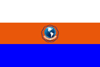 The flag of Colegio Americano is horizontally divided white-orange-blue with the school's emblem in the center.