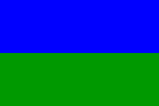 Another flag is a dark blue horizontal one with the coat of arms in the