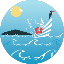 The circular shield is cyan (light blue), sky over sea, the latter with white