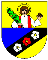 The coat of arms has on top of the flag-image St. Stefan Edberg, recognizable