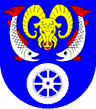 Flagdescription: blue, a yellow buck's head between two white fishes.