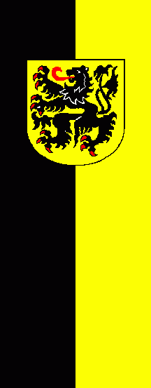 There is a black - yellow vertical bicolour (left image) and a yellow - black vertical bicolour (right image). The coat of arms in both variants is shifted to the top.
