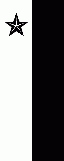It is a white - black vertical bicolour. In the canton is the coat of arms without shield.