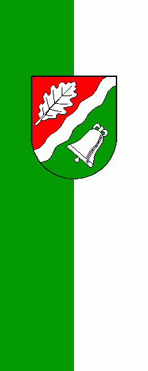 It is a green-yellow vertical bicolour. The coat of arms is shifted towards the top.