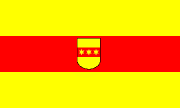 It is a yellow over red over yellow tricolour. The stripes have equal width. The flag's ratio is 3:5. According to Veddeler 2003 there exists a version with the coat of arms in the centre of the red stripe.