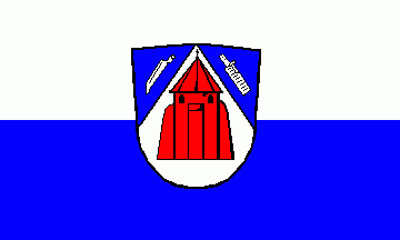 It is a white over blue horizontal bicolour with centred arms.