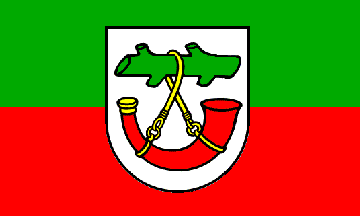 It is a green-red vertical bicolour. The coat of arms is shifted to the top.