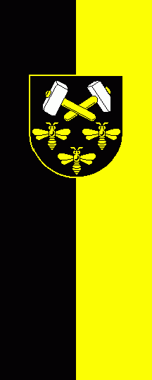 Unterpeißenberg was elevated to a market town in 1919 by Minister of Interior of Bayern and on this occasion it got its current name. The black colour and the tools are symbolising black coal mining in the past. The bees are referring to the local beekeeping and the production of honey in the town. They are furthermore symbolising the diligence of the local people. The tinctures of the banner are those of the arms.