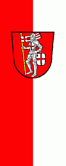 It is a red-white vertical bicolour. The coat of arms is shifted to the top, sometimes with an additional inscription "RÖTTINGEN" on top of the shield (see right image above).