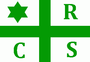 The white flag was parted by a green centred cross. The quarters were charged green as follows: