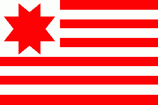 It was an 11-stripes flag parted by horizontal stripes alternating of red and white. On white canton was a rotated red 8-point star.