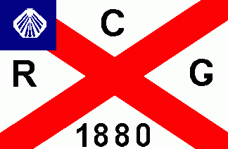 The flag was white parted by a red saltire with black inscriptions on any quarter as follows: "C"(top), "R"(hoist), "G"(fly) and "1880"(bottom). The flag had a square dark blue canton charged with a white scallop.