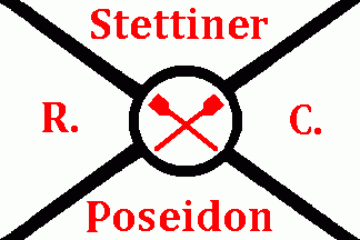 The white flag parted by a black saltire with red inscriptions on every quarter as follows: "Stettiner"(top), "R."(hoist), "C."(fly) and "Poseidon"(bottom).