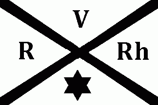 The white flag was parted by a black saltire. The quarters were charged black as follows: "R" (hoist), "V" (top), "RH" (fly) and a 6-point star (bottom).