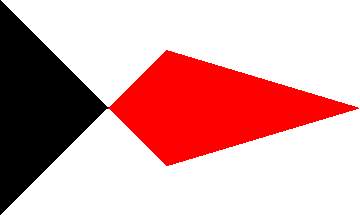 Pennant made up of two black triangles, a white chevron and a red lozenge.