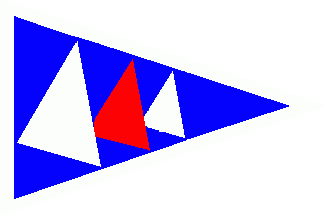 Blue pennant fimbriated white, three decreasing and overlapping sails white-red-white.