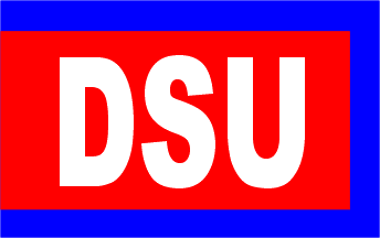 Deutsche Schiffahrts- und Umschlagsbetrieb, 1950-56 - red flag, bordered blue at top, bottom and fly; white "DSU". (That is: German Shipping and Transhipment Company)
