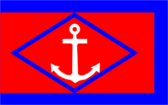 VEB Fahrgastschiffahrt "Weisse Flotte", 1956 - red flag bordered blue at top, bottom and fly; blue outlined diamond, white standing anchor.