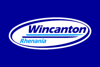 A specific house flag was shown on a German inland shipping discussion site: currently unreachable: Dark blue with a modified Wincanton brand: a white oval bears a dark blue oval rim, getting thinner at upper right and lower left, enclosing the company name "Wincanton" in dark blue italic letters, twice underlined by a light blue and a dark blue stripe, respectively (the stripes are pointed at the right end); at lower left, still enclosed withtin the rim but subordinate, is placed the name "Rhenania" in light blue italic letters.