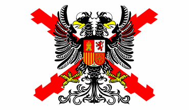 These flags vary somewhat, the typical design including a Celtic cross instead of the Spanish coat of arms.