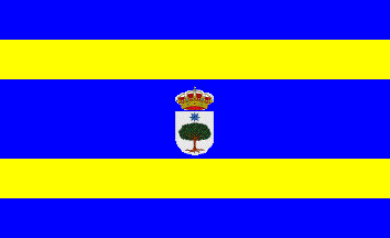 Flag: Rectangular flag, in proportions 11:18, made of five parallel stripes perpendicular to the hoist, the first and the fifth, blue in height 1/6 of the flag's hoist, the second and the fourth, yellow in height 1/6 of the flag's hoist, the third, central, blue in height 2/6 of the flag's hoist. Centered overall, the local coat of arms.