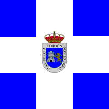 The coat of arms (municipal website) was proposed by Gordón-born Francisco Escobar García, priest and professor at the University of Oviedo, in a memoir submitted to the Royal Academy of History. On 25 June 1976, the Academy validated the proposal, amended to "Azure a lion or a castle argent masoned sable with a lion or sinister. The shield surmounted by a Royal closed crown", therefore recommending to omit the border with the motto. The municipality appealed the recommendation, which was reverted on 25 July 1977. The charges and the motto, meaning "Gordón was not seized, either", recall Gordón castle and its resistance to Al-Mansur's siege.