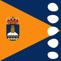 Coat of arms: Spanish shield rounded-off in base. Azure a fess wavy argent in base surmounted by a five-arched bridge or surmounted by a slate heap gray surmounted by the tower of the parish church or. The shield surmounted by a Royal Spanish crown.