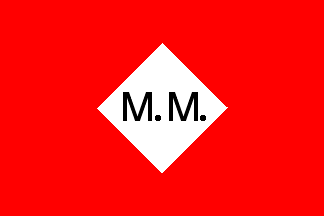 Reed (1891) shows the flag as a red field with a small white diamond outlined black and bearing the black letters "M.M."; as pointed out by Neale Rosanoski, "this seems suspect in lieu of any supporting information".