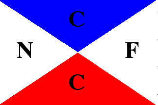Album des Pavillons, 1923, shows the flag as quartered per saltire white-blue-white-red with the black letters "N", "C", "F" and "C" in the respective quarters.