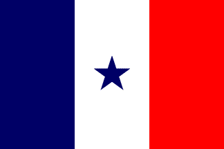 French Tricolor with a blue star added in the white field. The burgee of the UYF is a triangular version of the flag.