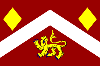 a Chevron Argent between in chief two Lozenges and in base a Lion passant