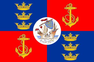 confederation and also emphasises the strong association of the locality with the sea, whose colour forms the background against which the ship is placed. The blue is a lighter shade to enhance the contrast with the red of Kent in the hoist panel.