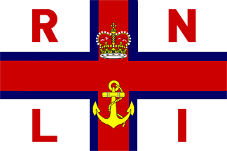 cross of St George with a narrow dark blue border; the letters R.N.L.I. in red,